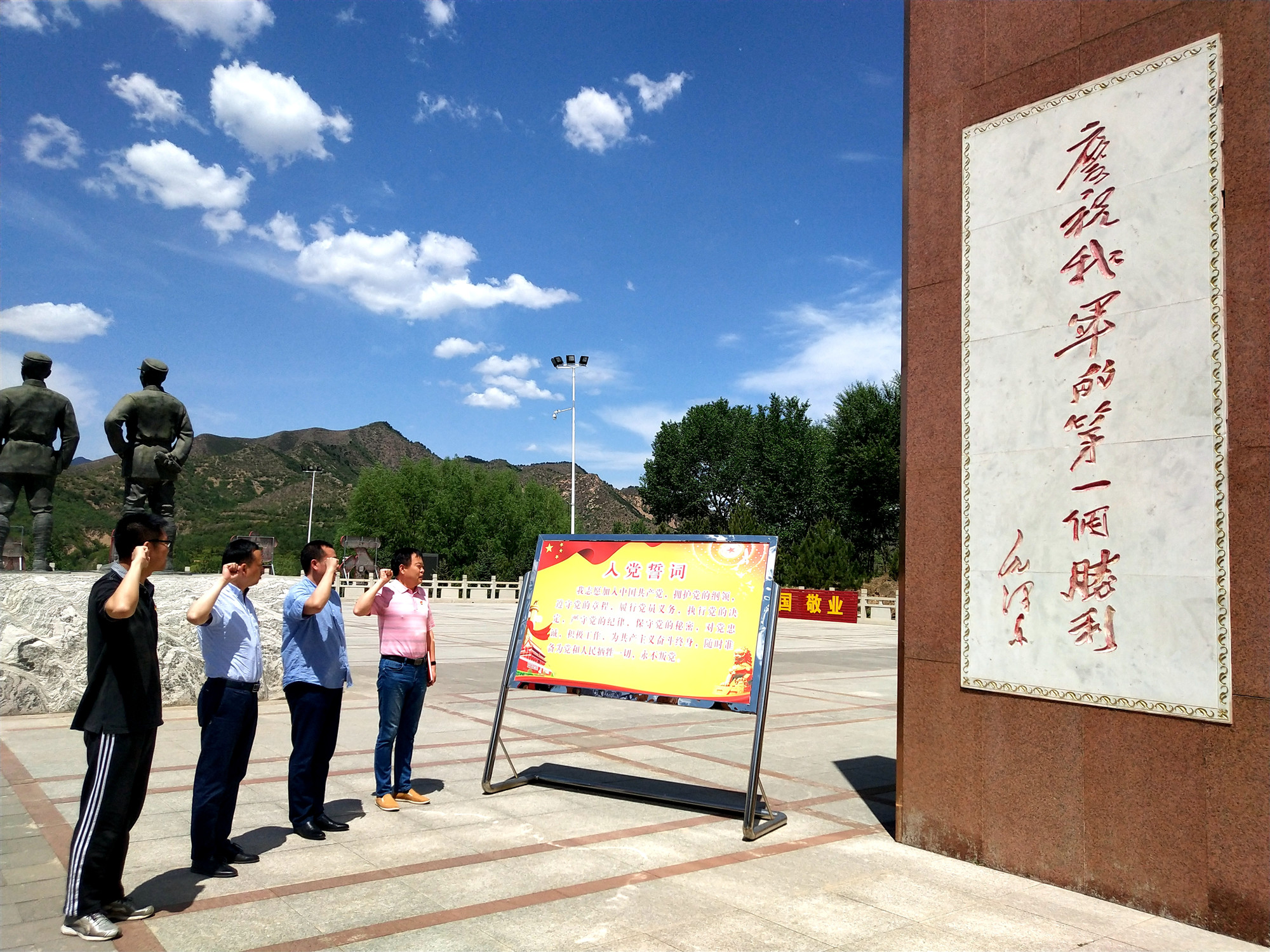 活動(dòng)中,黨員和入黨積極分子們通過(guò)參觀(guān)平型關(guān)大捷紀念館中一件件飽含故事的舊物,了解革命事跡,學(xué)習“國家至上、民族為重、不畏強敵、敢于勝利”的平型關(guān)精神,感悟黨的豐功偉績(jì)和奮斗歷程,并在在紀念廣場(chǎng)上,全體黨員右拳高擎,重溫入黨誓詞。