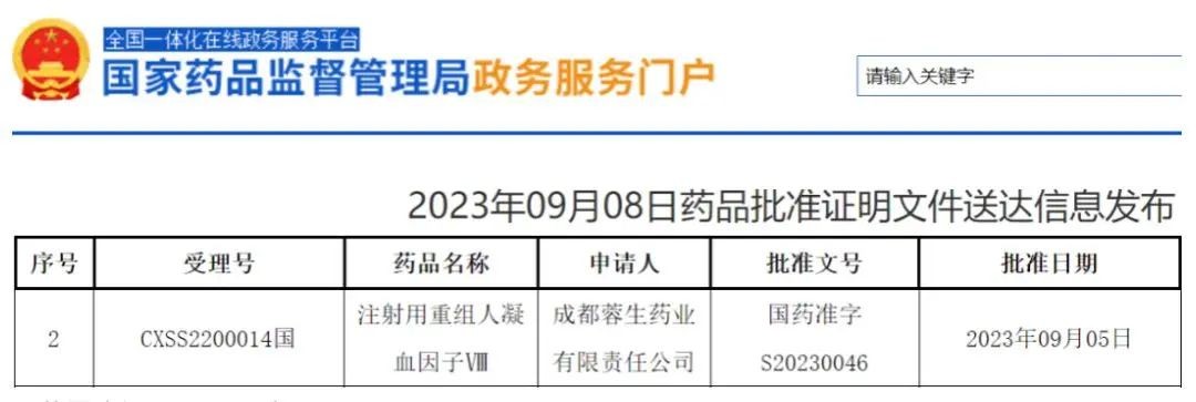 國家鼓勵開(kāi)發(fā)的罕見(jiàn)病用藥、突破原料血漿來(lái)源限制的重磅產(chǎn)品、讓血友病A患者有更多的用藥選擇……諸多亮點(diǎn)讓人對“注射用重組凝血因子Ⅷ”充滿(mǎn)期待。9月8日,根據國家藥品監督管理局(NMPA)網(wǎng)站發(fā)布的最新公告,國藥集團中國生物血液制品板塊企業(yè)天壇生物所屬成都蓉生藥業(yè)有限責任公司(簡(jiǎn)稱(chēng)“成都蓉生”)研發(fā)生產(chǎn)的“注射用重組凝血因子Ⅷ”獲批,標志著(zhù)該產(chǎn)品即將正式上市。